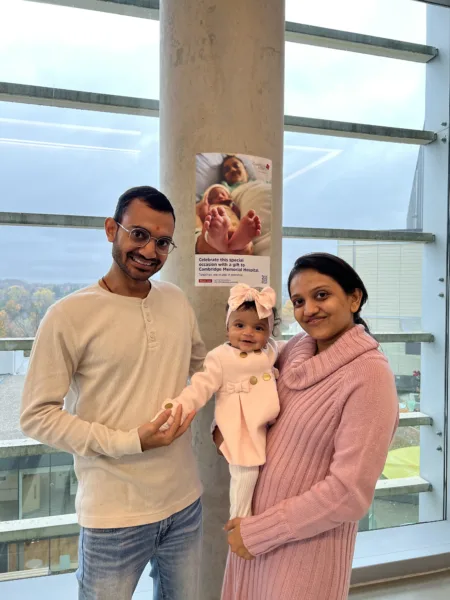 Meet Shweta, a new mom who recently gave birth at Cambridge Memorial Hospital. Shweta and her newborn are featured in our Birth Celebration appeal, where families and loved ones can donate to the hospital to celebrate and cherish this special moment. Look for these posters in the Obstetrics Department or view it online here.